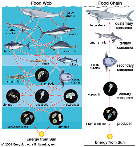 In a food web, the arrows point towards the flow of energy or (circle one)